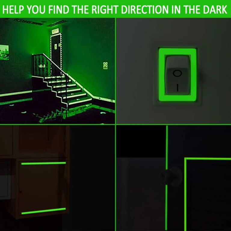 অন্ধকারে স্বয়ংক্রিয় উজ্জ্বলতা: এটি কোনো চার্জার বা ব্যাটারি ছাড়াই আলো শোষণ করে অন্ধকারে উজ্জ্বল হয়, যা রাতে সিঁড়ি বা করিডোরে হাঁটাচলা নিরাপদ করে।
